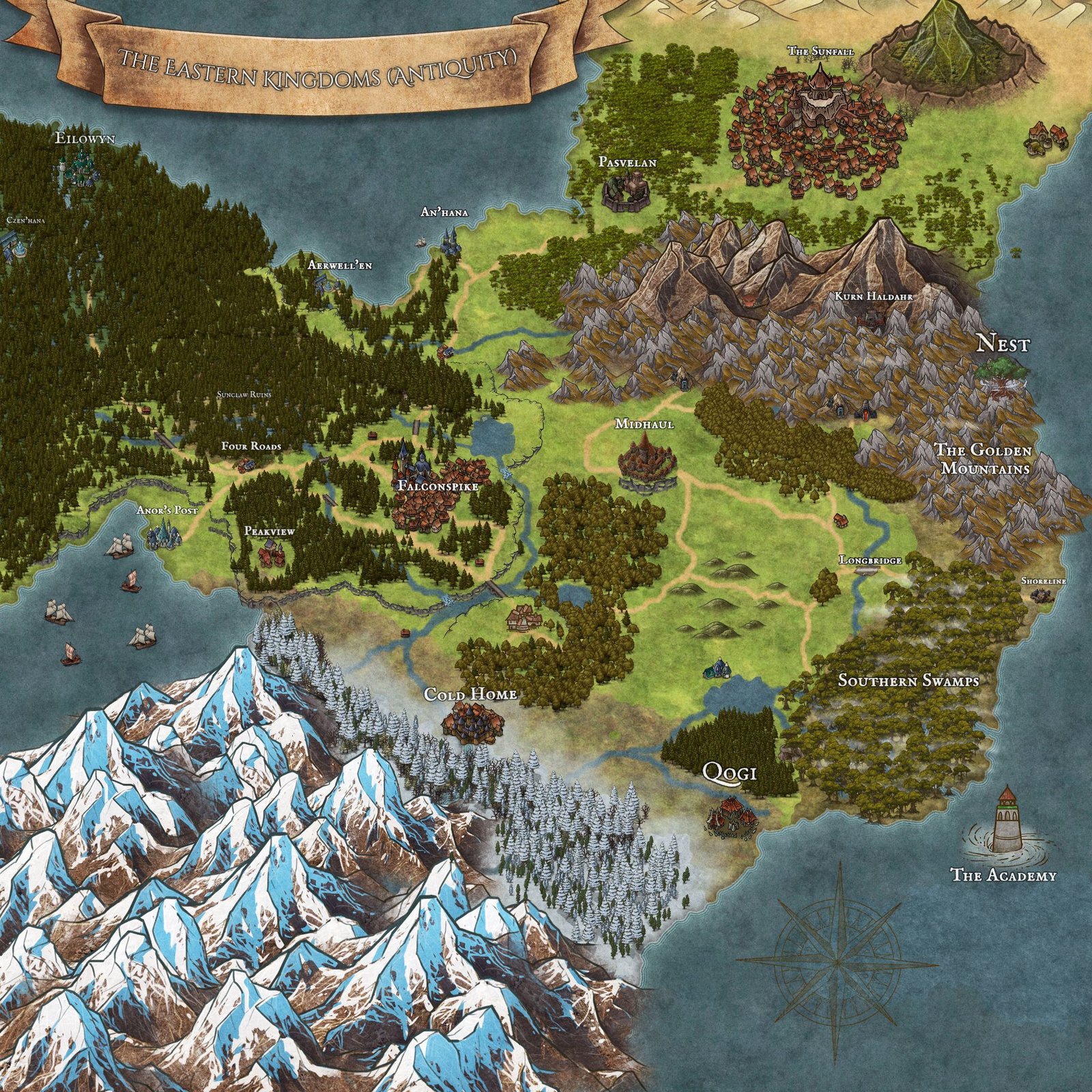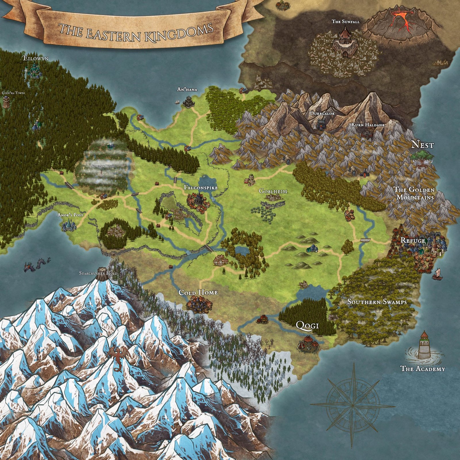 The Eastern Kingdoms as the party remembers it. This is about 1000 years in the past, where the Shadow Lord has just been defeated at the Sunfall.