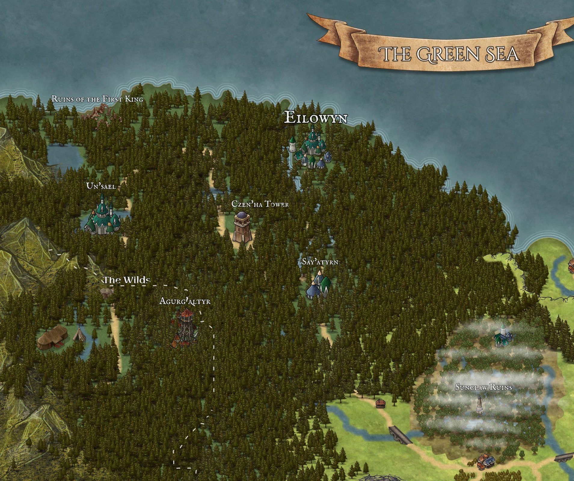 The Eastern Kingdoms of the present time. It is comprised of a few different areas, namely: The Green Sea, Falcon's Rise, Mountainveil, and The Verdant Plains.